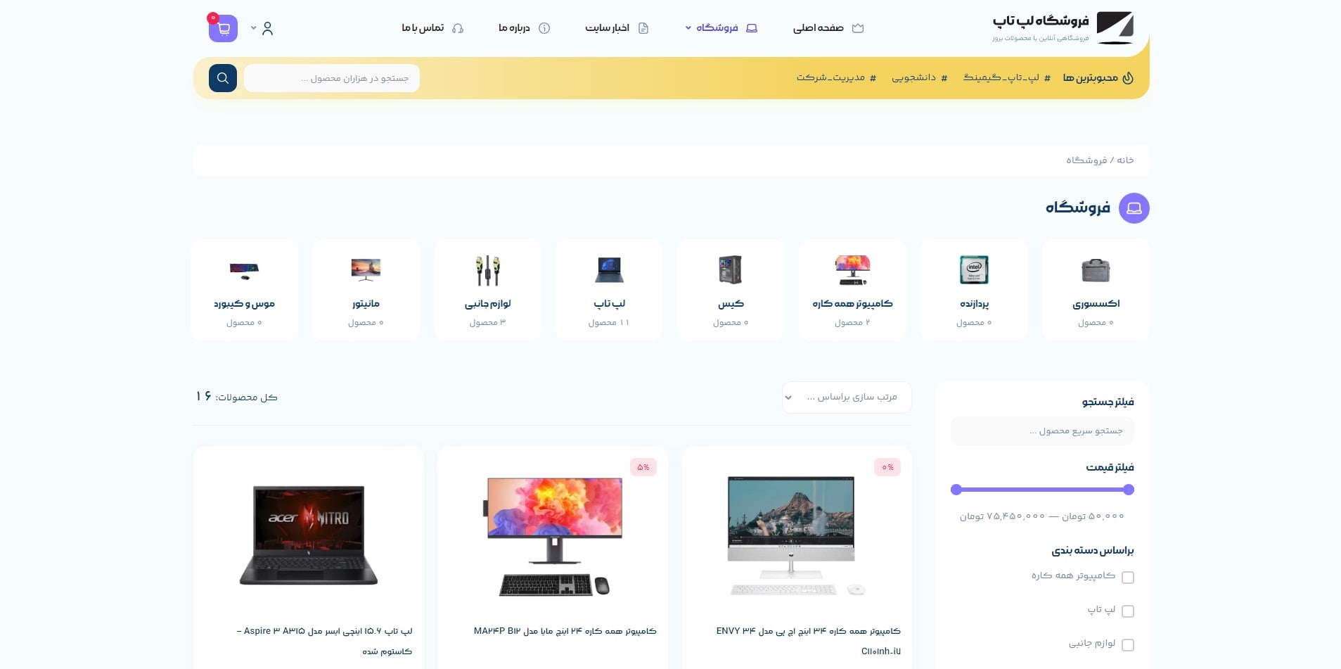 طراحی سایت فروشگاهی لپ تاپ و کامپیوتر